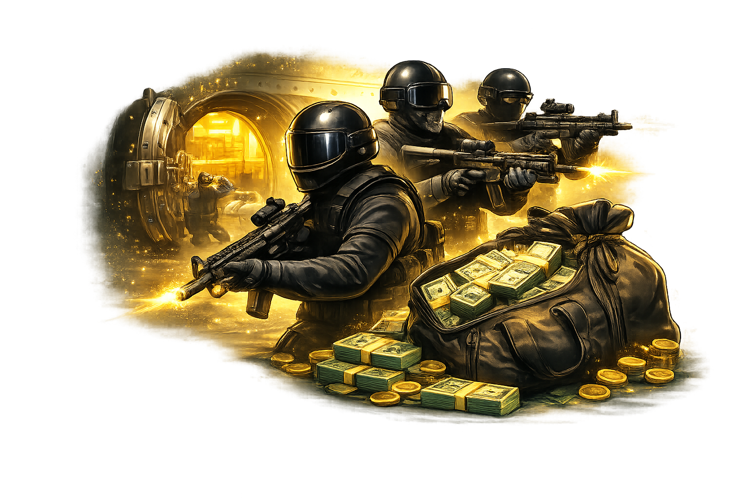 Szybki, modowany napad trwający zaledwie kilka sekund. Każda realizacja daje 110% wypłaty oraz około 4 000 000 $ gotówki. Idealna opcja dla graczy, którzy chcą maksymalny zysk w minimalnym czasie, bez zbędnego grindu.